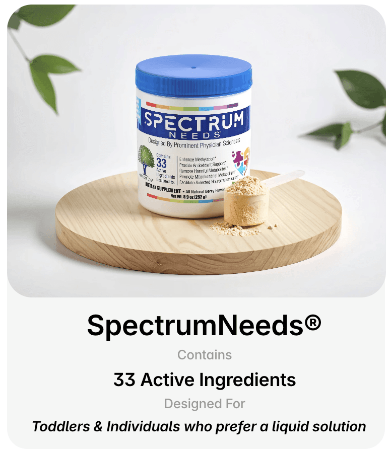 Thus, when comparing the two, SpectrumNeeds® may be more appropriate for neurodevelopment‐focused support in children/adolescents, whereas EnergyNeeds® may present a more robust mitochondrial and immune-support modality for older individuals or those with functional/mitochondrial “cocktail” needs.